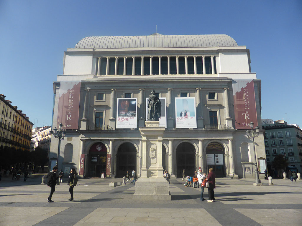Right. I’m done with this now. I descend to the metro and start keeping time, because I want to know for the future how long it takes to get to the airport. On the platform at 1253, there’s a couple of guys with musical instruments waiting, and very few other people. A train arrives and I go 4 stops to Nuevo Ministerios, and when I leave I see that those guys are busking in the last carriage. One of the instruments is a double bass! I find this hilarious. Such a crazily unwieldy instrument to cart around on a tube train, ha!