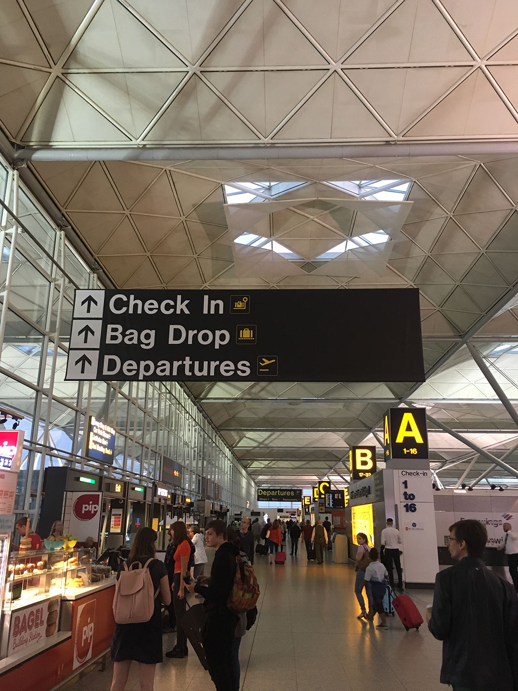 No-one checked our tickets and there’s no barriers to get out. Huh. The first advert in our face at the station was for Stella Artois and my oh god, Stansted, home of the dreaded low-cost carrier snobbish awfulness kicked in hard. This was not helped by the fact I’d read numerous tirades about just how appalling an airport Stansted is. Let’s see, shall we.