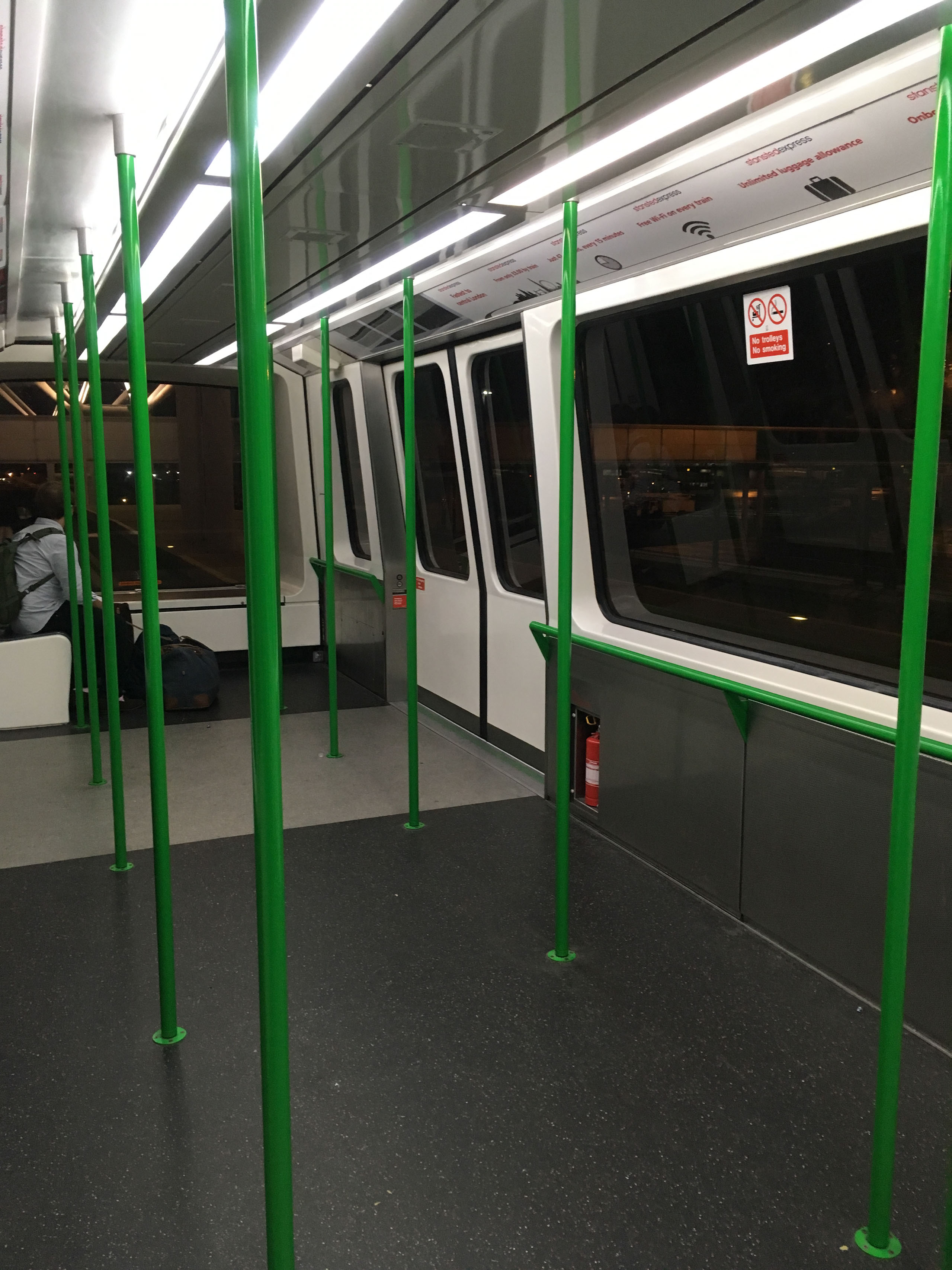 Through a window we spot a monorail, and I wonder if we’ll need to get it. The departure boards say we’re going from gate 4, and our boarding passes say the gate will close at 2015 so we set off at about 8pm.