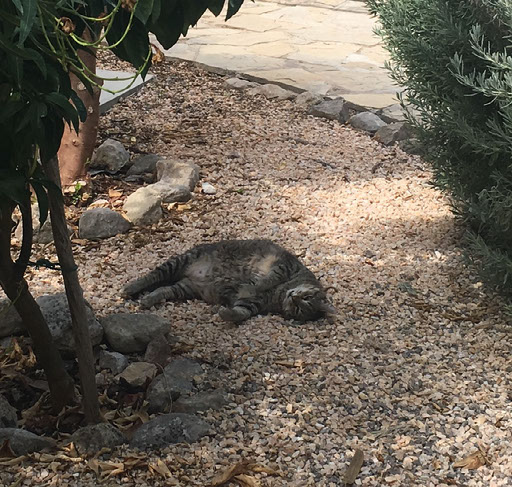 Seems quite nice this place. We’re on the second floor, up some unreasonably steep steps. Out back there’s a pool and a cat we suspect might be pregnant. It (she?) meows a lot without moving.