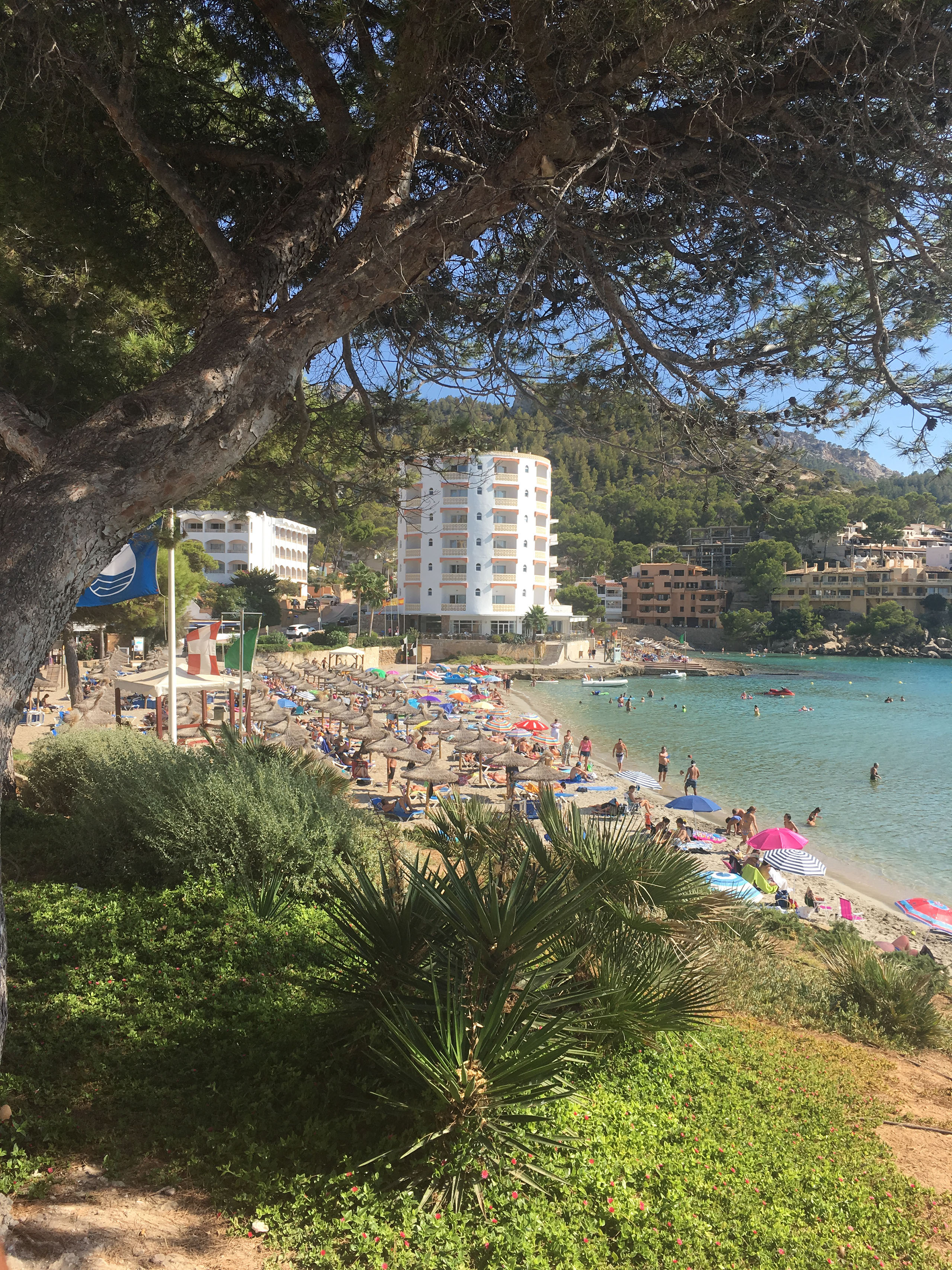 Up and over a mountain, through Andratx - which I insist on pronouncing Anthrax (it’s really And-ratch) - and to S’Arraco. We perch outside a bar with a drink, and then walk up to our hotel.