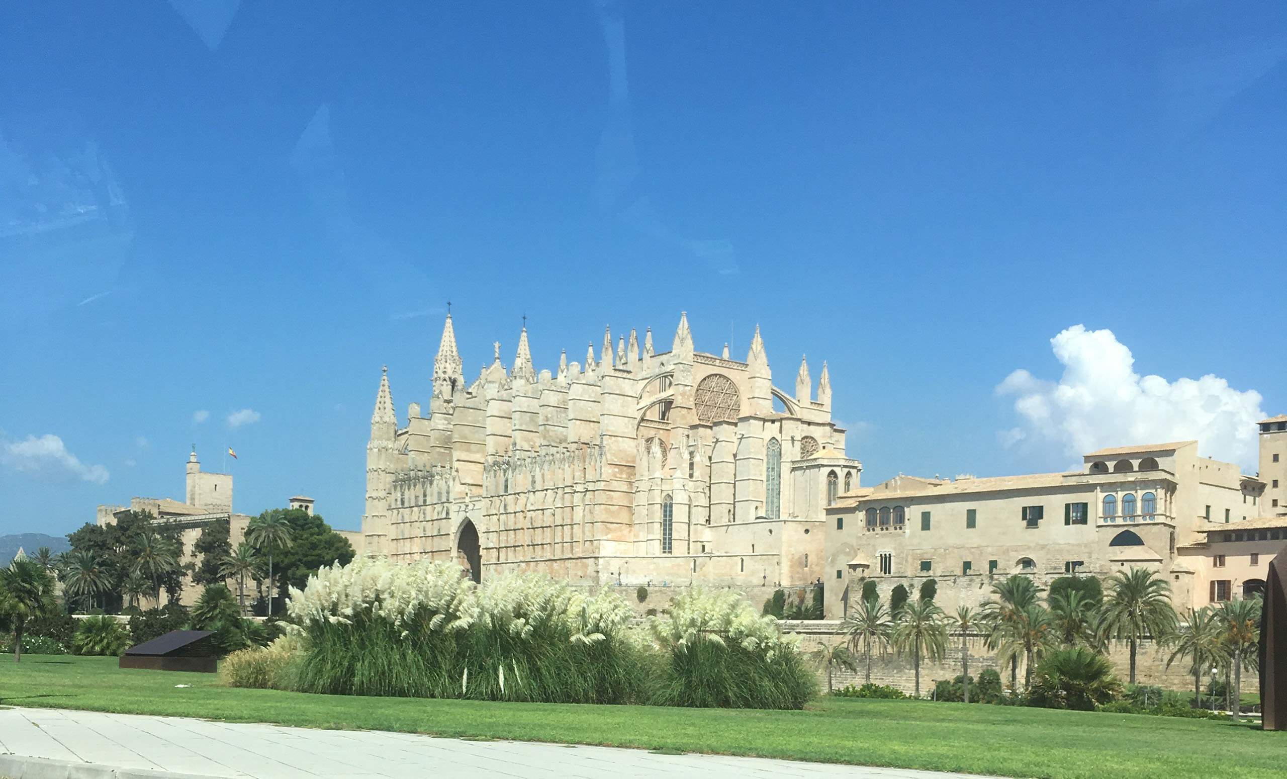 Giving up on google, Rich made his way to the main road and we drove a fairly circuitous route through Palma to get down to the front. Quick, lightning tourism out of the window: there’s a cathedral ’n that.