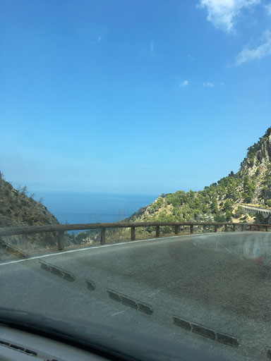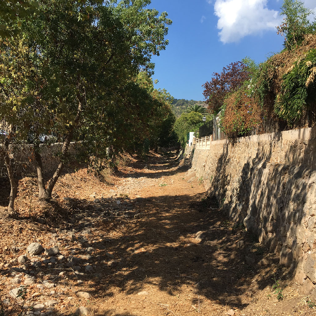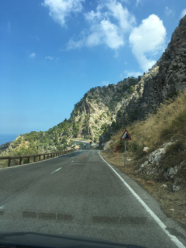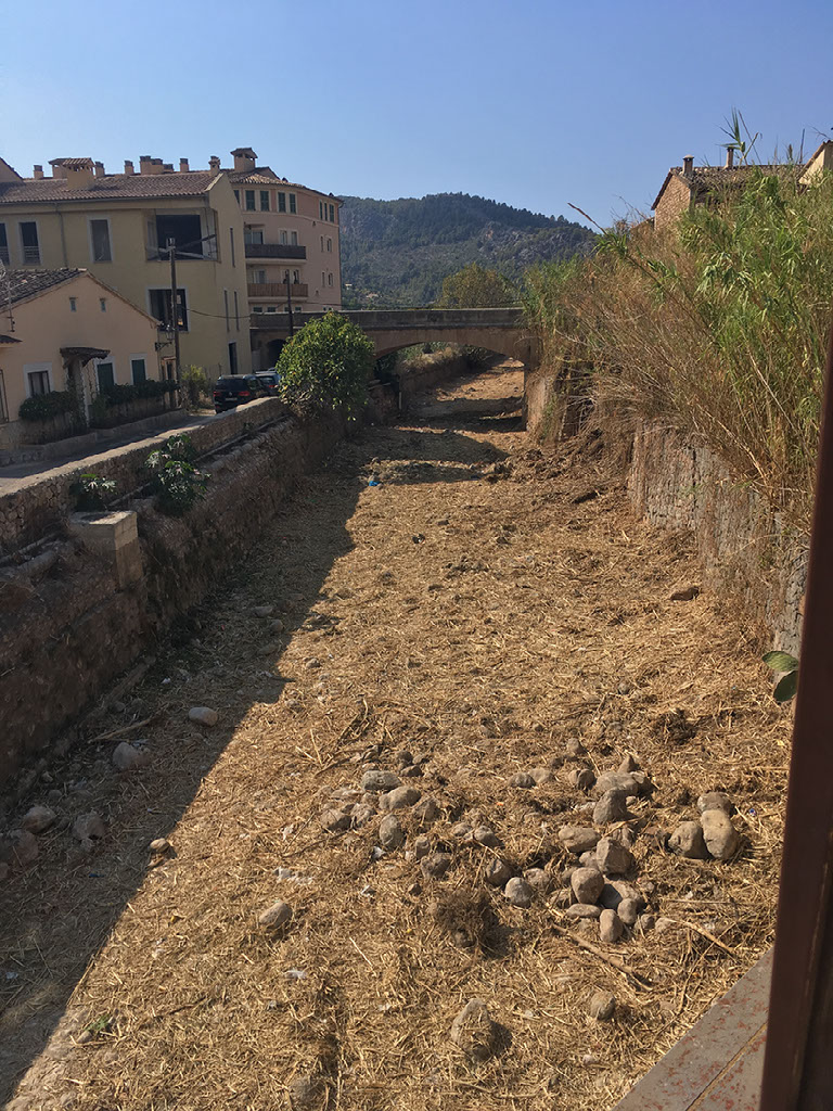 A little while after there, there is a genuine large fork in the road as we can choose to continue the genuinely scenic but unfortunately terrifying route, or head inland. For Helen’s sake we choose the latter, and find ourselves in a town called Esporles. The river is somewhat dry.