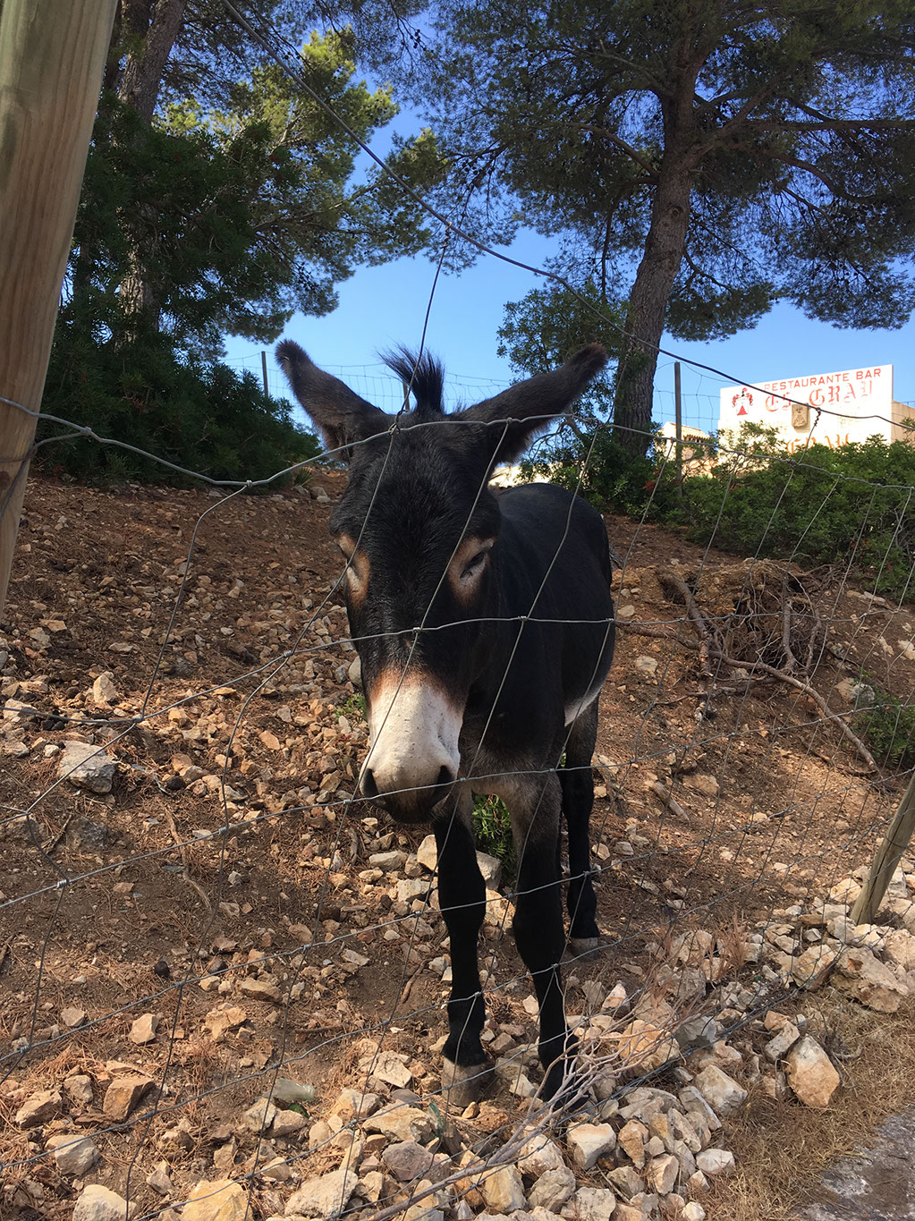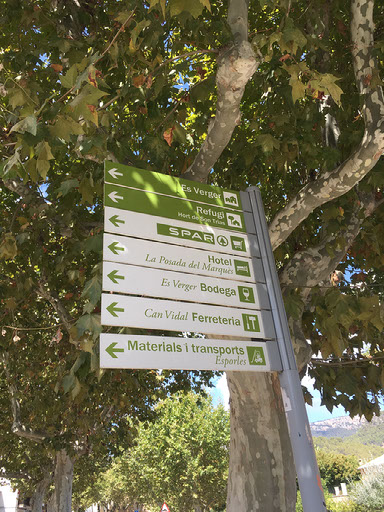 We stop, because we’re all hungry and thirsty and the other two need a smoke. Esporles seems, as with everywhere else on the island, lovely. Each street corner has a sign pointing to things like Spar, a vet, a hairdresser, etc. I have a beer, the others have softs. The place is very reminiscent of a typically Australian “hotel” bar, actually, especially with all the fruit machines and other gambling paraphernalia.