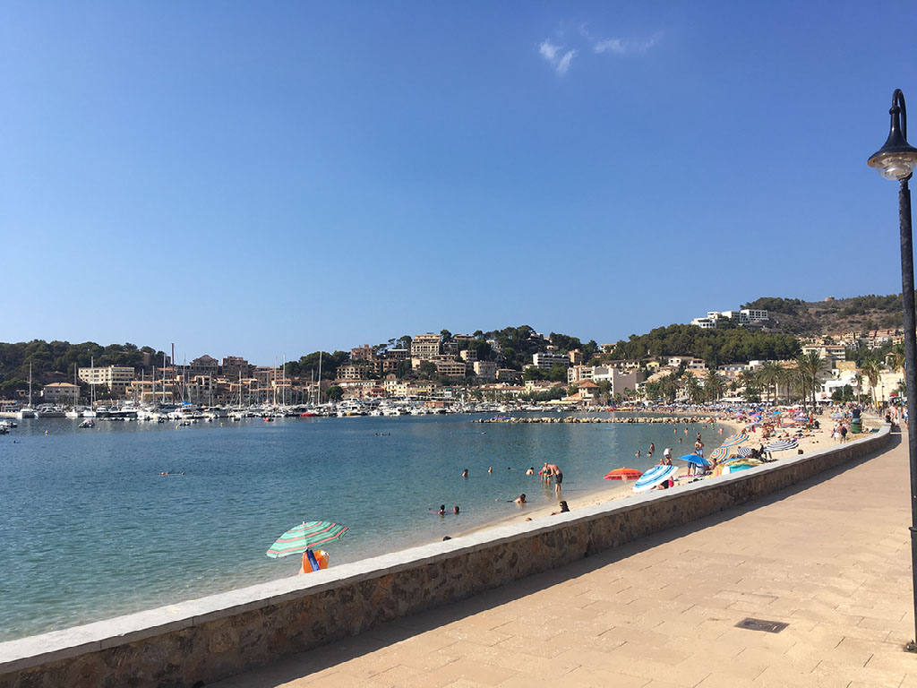 Beyond the town, the tram goes over dry rivers, past lots of back gardens, through a car park, alongside a motorway, and then eventually - because it stopped a lot - was next to the sea. Hello, Port de Soller. I’d totally expected this to just be a tiny district, maybe a 5 minute ride, not a half hour odyssey to a whole new town.