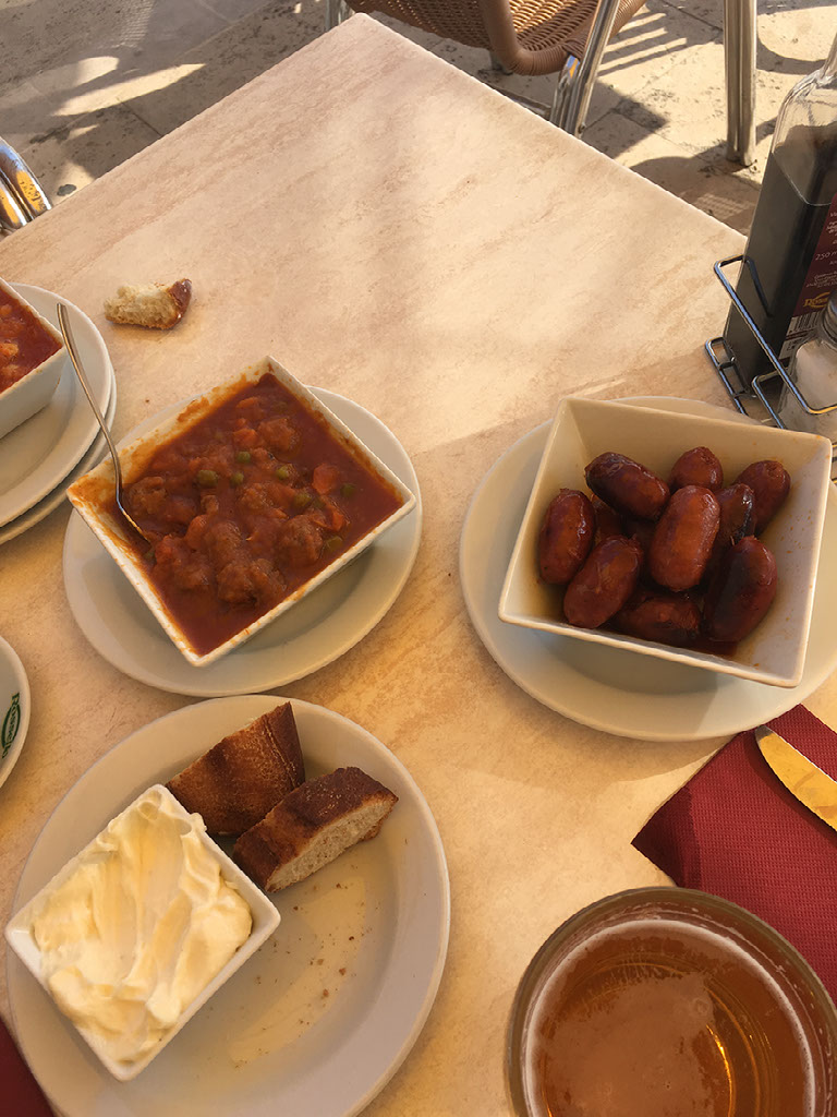 Anyway, not now. We drive back to S’Arraco and I’m glad to not have to sit in this car much more. At the village we quickly drop stuff off, get changed, and go back out for dinner. It’s more tapas and beer - including an 8% bad boy marzen - at the bar we’d popped into just before midnight on Sunday.
