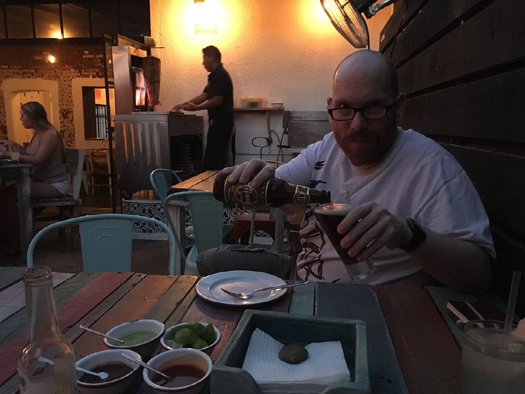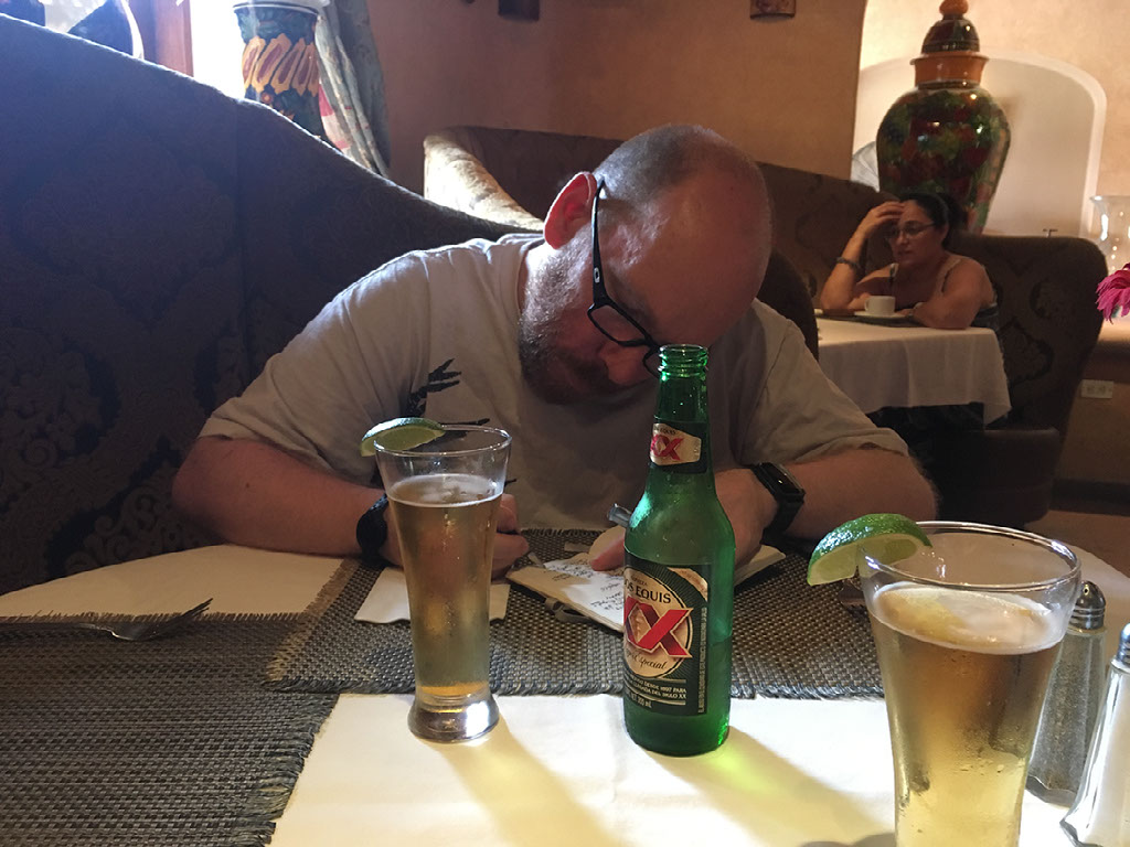 With Helen both possibly incapacitated and suffering Mezcal sweats, we paid up and left. She struggled up the very slight incline, and we headed back to Oxxo for another 6 pack of Dos Equis and soft drinks for the morning. After researching further eating options for the remainder of our time here, I once again dozed off still clutching an open can.