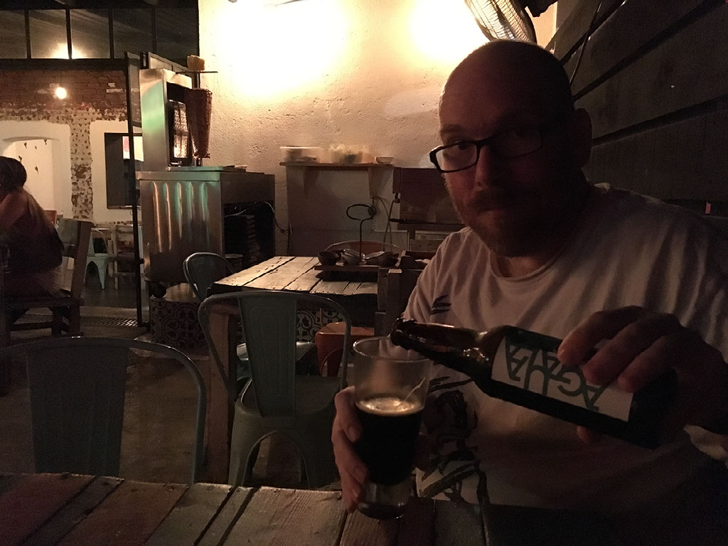 Sensibly taking her limb-defying drink slowly, I took another cerveza, this time an oatmeal stout and HOLY SHIT IT WAS GORGEOUS. A song came on which reminded me very much of the theme tune from Sorry! as performed by Matt Berry’s band.