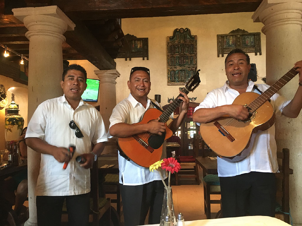 “¡Hola amigos, again!” - it was the same roaming band as we’d seen on Saturday at the rooftop place down the way, only this time with an extra man plus nervous looking child in tow, and much worse shirts. They played us one song and continued their rounds.