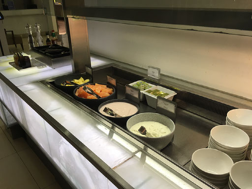 The Madrid airport experience is awful. Disembarking off one of their typically lengthy airbridges, we queue up to go through security which I don’t remember being a thing, and then look for a pharmacy. There isn’t one in this terminal. So we go to Iberia’s flagship lounge, the Velazquez. I have had a variety of experiences here: first time, in 2014, I found it to be overcrowded and horrible, with people having to sit on their bags or on the floor and yes, you can grab some freebies but it wasn’t relaxing or pleasant place to spend any time. But last November, when the lounge was fairly empty in the afternoon, it was perfectly pleasant.