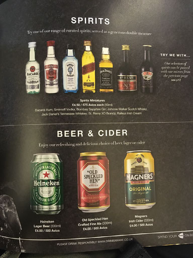 £4 for a can of Old Speckled Hen is a disgrace. The inflight magazine carries adverts for Tiger lager, which they used to give out for free but now don’t stock at all. Well done, BA!