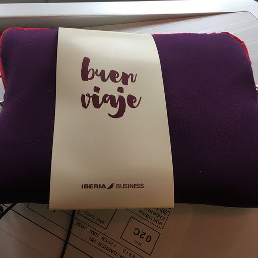 Eventually we are there, onboard flight IB6313 from Madrid to Costa Rica. Helen is in plum seat 1A, with oodles of privacy and a seat by the windows. I’m in the aisle equivalent behind her, 2C. We get acclimatised quickly, and our view of the galley makes it seems as though a pre-flight Cava is imminent. It remains imminent for a good half hour or so. We do get amenity kits though, and then there’s a power cut.