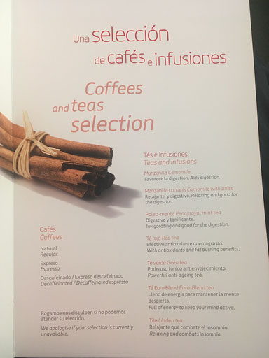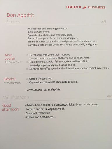 Also menus, and an offer of some Spanish language newspapers. There’s a hell of a lot of pre-flight stuff going on, not least because we leave the gate at least half an hour late despite having boarded very promptly. No (English) explanations are given for this, but it has given the weather the chance to get worse.
