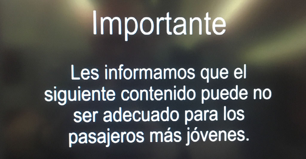 Hello. I’m in Costa Rica, with Helen. Are you interested in how we got here? If so, here’s a Spanish language warning I grabbed off the in-flight entertainment.