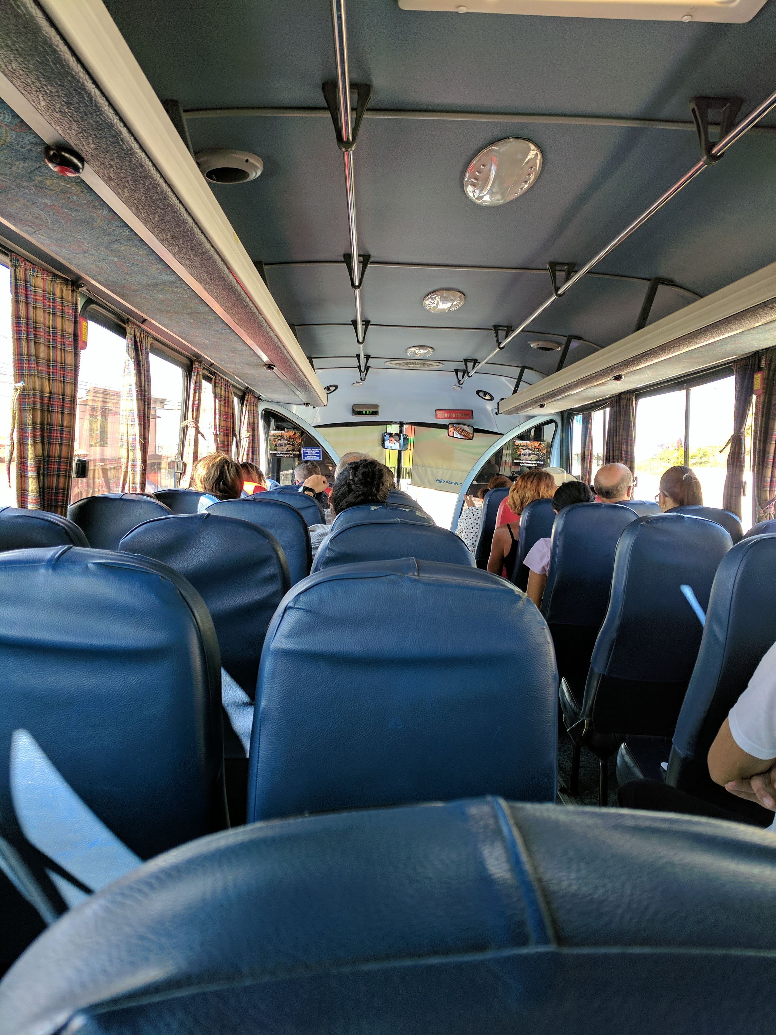 There’s still no Sarchi bus. A man cleaning windows of a bus tells us to go one block back and then right, or something? We gingerly walk that way and shouty man is still there, still shouting. GRECIA! GRECIA! No, no, Sarchi. We think he’s trying to bundle us into a cab or something. SARCHI! OK! SARCHI! BUS! BUS! SI! AQUI! AQUI! And he walks us up to a bus, then a second bus, points out it says Sarchi on the front, and fucks off. I’ve got a few hundred colones ready to hand him but he doesn’t even wait after getting us where we want.