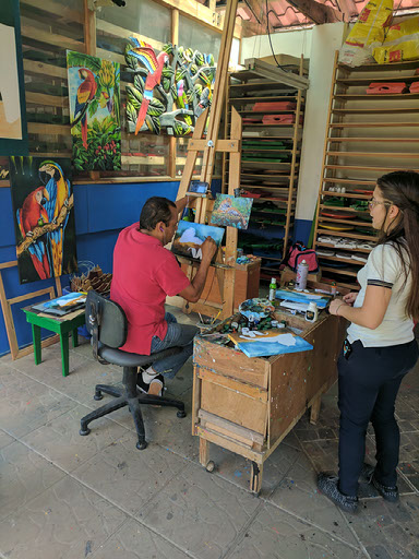 Anyway, priorities. Done the record, now let’s nip into a cafe to buy a drink and use the loo. A friendly woman interacts with us entirely in Spanish, which isn’t hard when all she has to say is “OK” and gesture for us to sit down. We consult the map for the second and third places to visit and set off, first to a place where you can see the local crafts being made: Taller Eloy Alfaro.