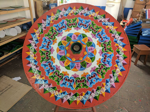 It’s pretty fantastic, the workshop. There are 4 artists doing different things - one is painting a painting, if you get my drift - a leopard on canvas. One is painting patterns onto trays, another on ox cart wheels. Can’t remember what the fourth was up to. We left some coins in a tip jar and got a small acknowledgement, but to my surprise this was not somewhere where an overbearing member of staff would shadow you constantly and put things in your hand with relentless pressure to buy.