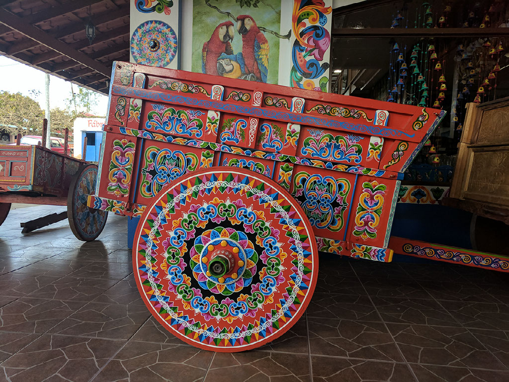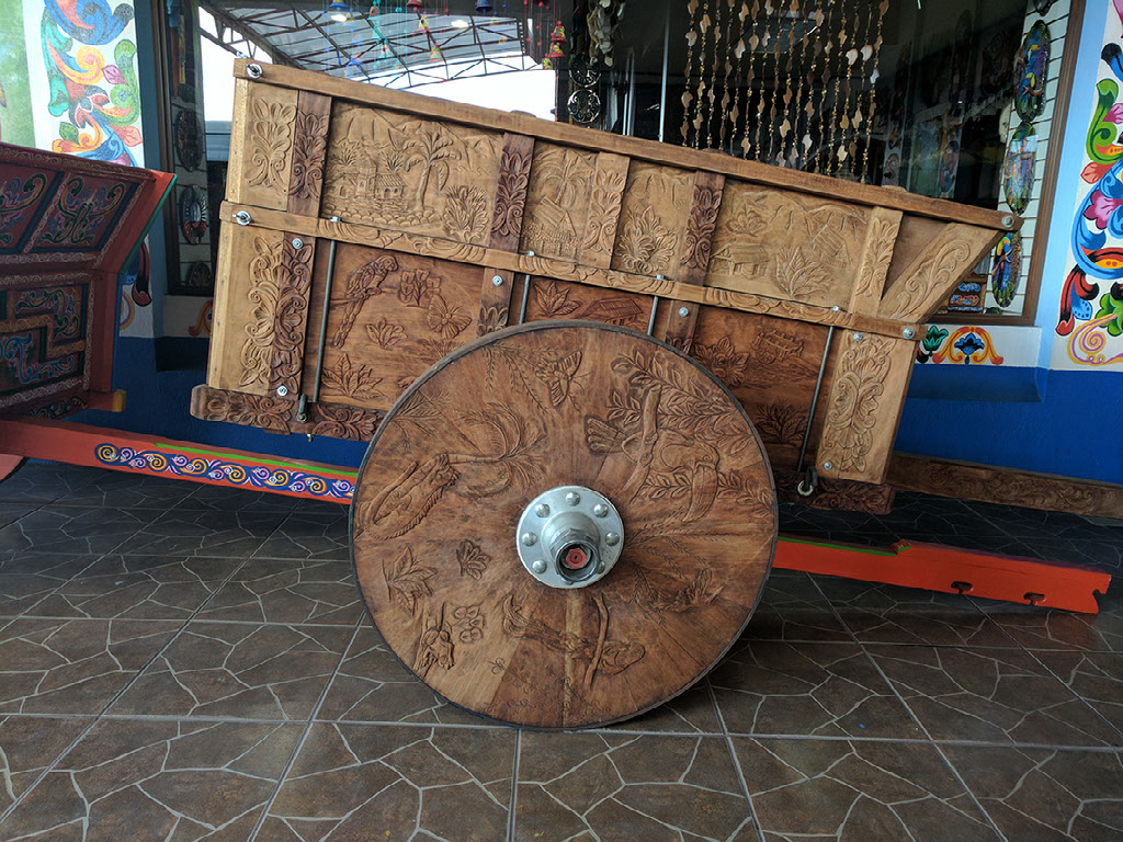We’re heading to the bus stations again, for another day trip. Deliberately less strenuous than the volcano, it’s a jaunt to a village named Sarchi, which specialises in furniture, arts and crafts, and a world record. We have no idea where to get the bus from, as usual, and after walking around all the stops and not finding Sarchi written anywhere we ask two random women by pointing to the word Sarchi in our pad. They point us up the way, back towards town.