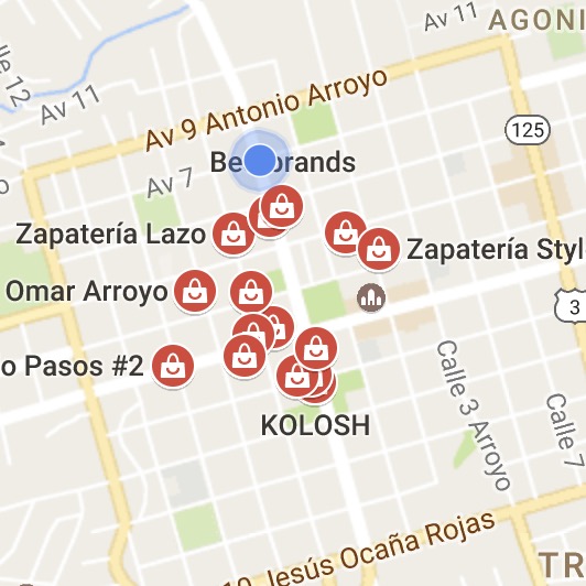 Seriously I’m not making this up. Here’s a screenshot of Google maps when you search for ‘zapaterias’ (shoe shops) around here.