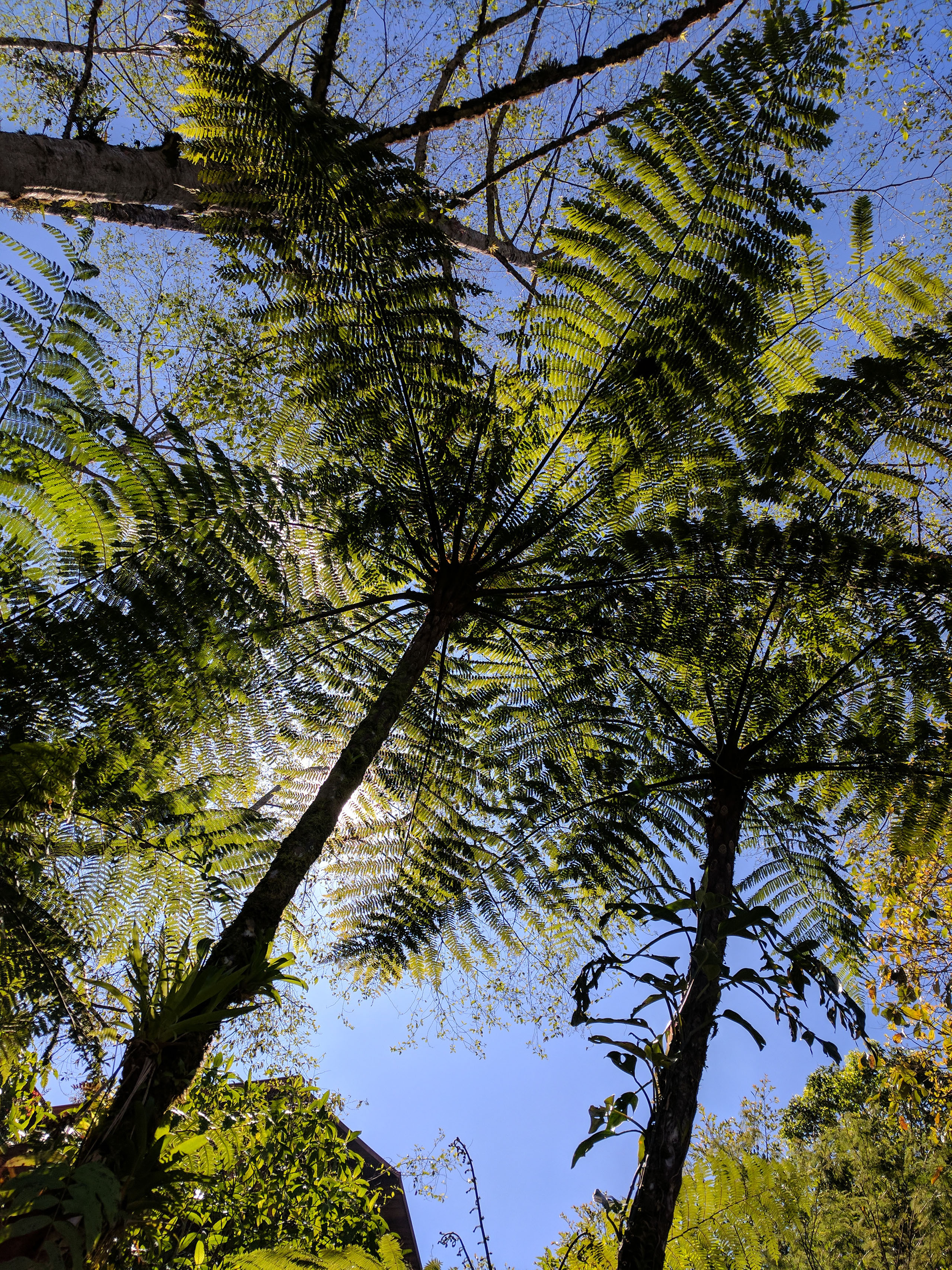 The weather is fantastic and the gardens look amazing from above. On the first path we are sheltered by huge tree ferns.