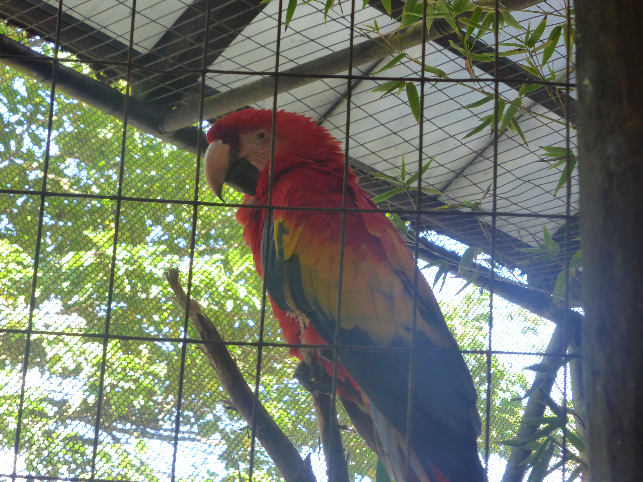 There’s some macaws. They’re very pretty ’n that. But while I’m taking this photo Helen is excitedly beckoning me to another inner aviary inside the main one. What’s the big deal?