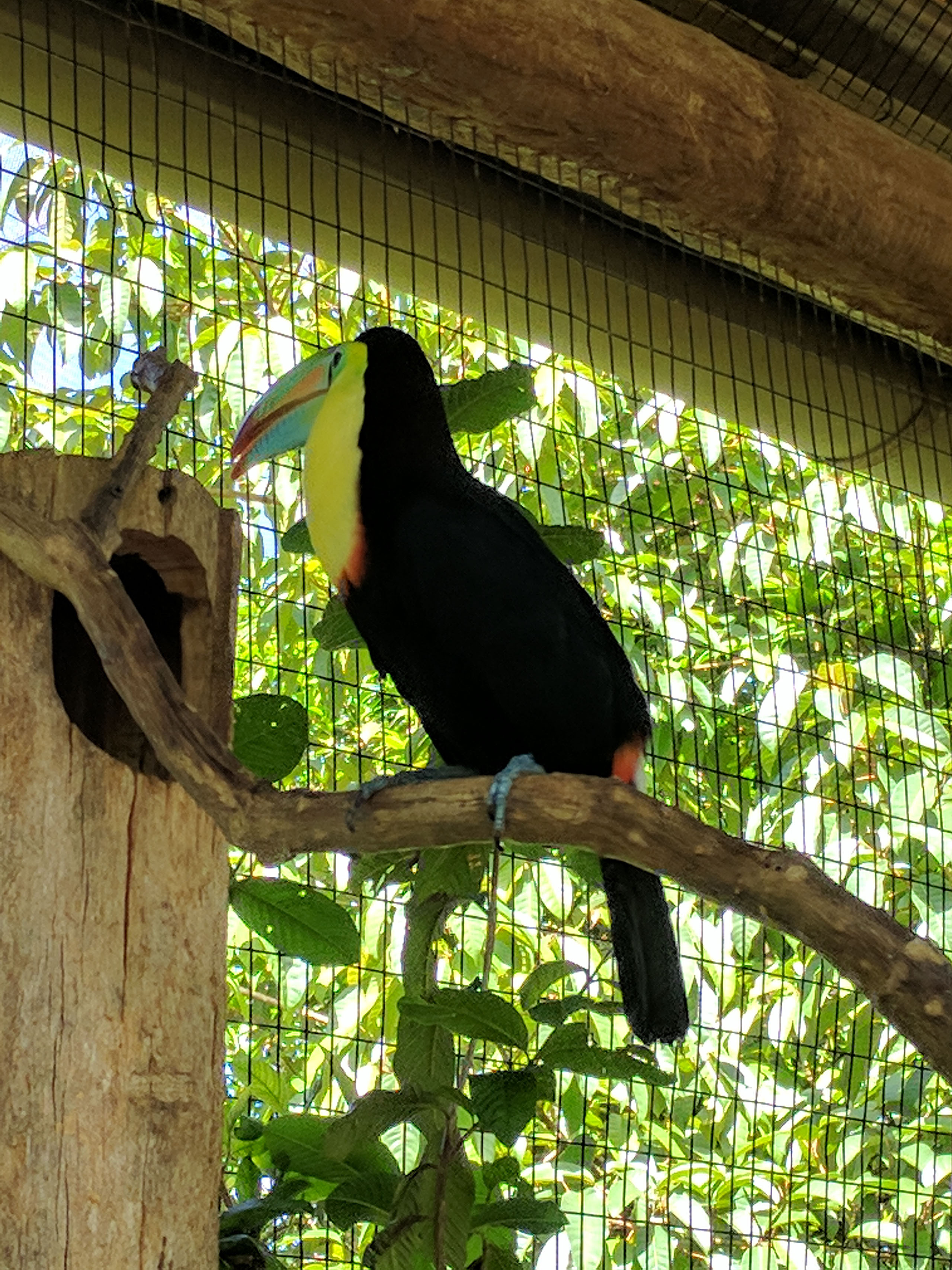 This fella is a rainbow billed toucan. He looks away from us the whole time but makes a huge racket. After profusely thanking the toucan house guy and leaving a tip in the box, we leave. We just held a toucan!
