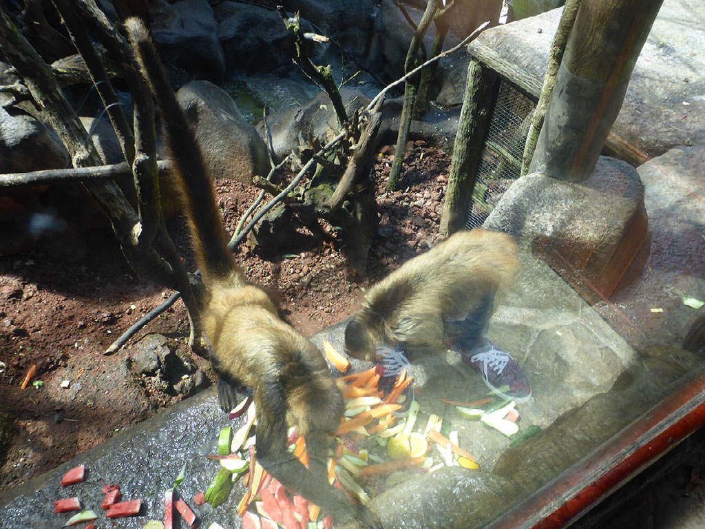 Neither of us could get decent photos of either, because of all the glass. The monkeys stayed stereotypical by tucking into bananas and scratching their arses.