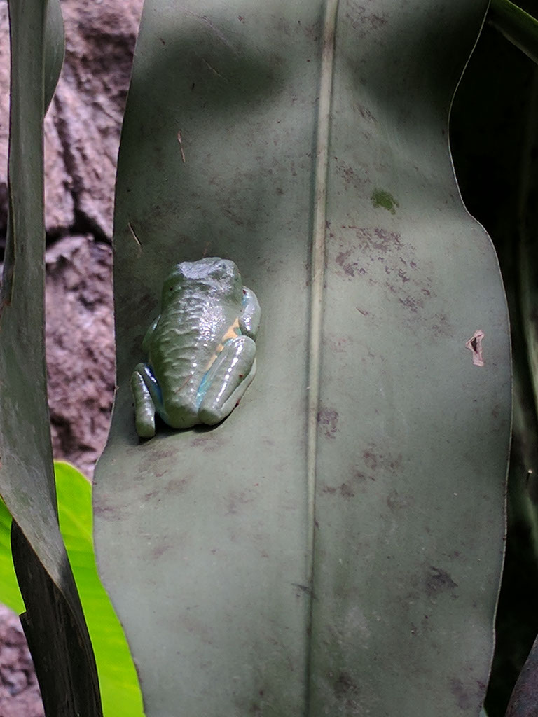 This handsome chap took some finding. Neither of us could get a great shot. We had no idea what any of these frogs were, until leaving - apparently through the entrance, because there was the sign saying “that one’s poisonous”.