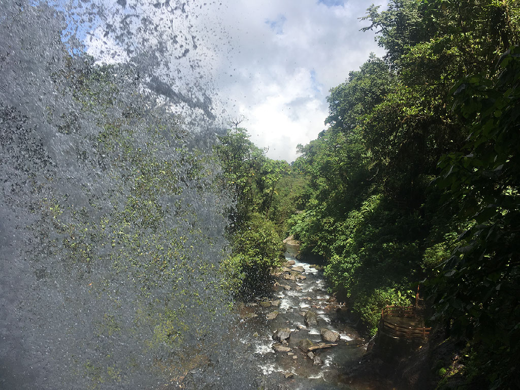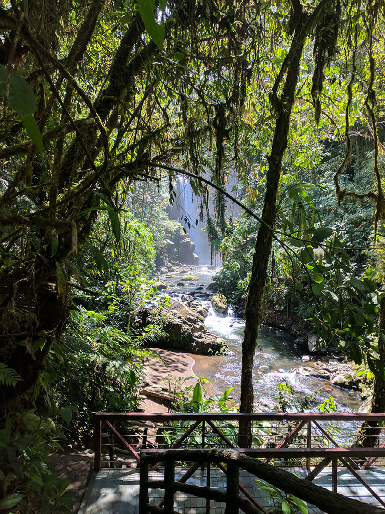 This is getting tiring now. But I’m rewarded with another 12 steps down to one last viewing platform, which is above La Paz waterfall. It’s actually not the most impressive of the lot, certainly from this angle, but for the fact that there’s a goddamn rainbow forming right in front of me!