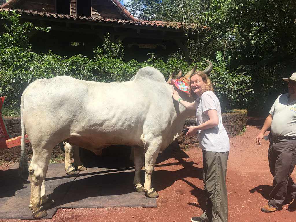 Turning off the Poas road, we go through a few farming villages which are definitely the “poorest” areas we’ve seen, but still everywhere has immaculately mowed and carved-flat football pitches. They take it seriously round here; Catherine says when there’s a game on is the best time to go shopping.
