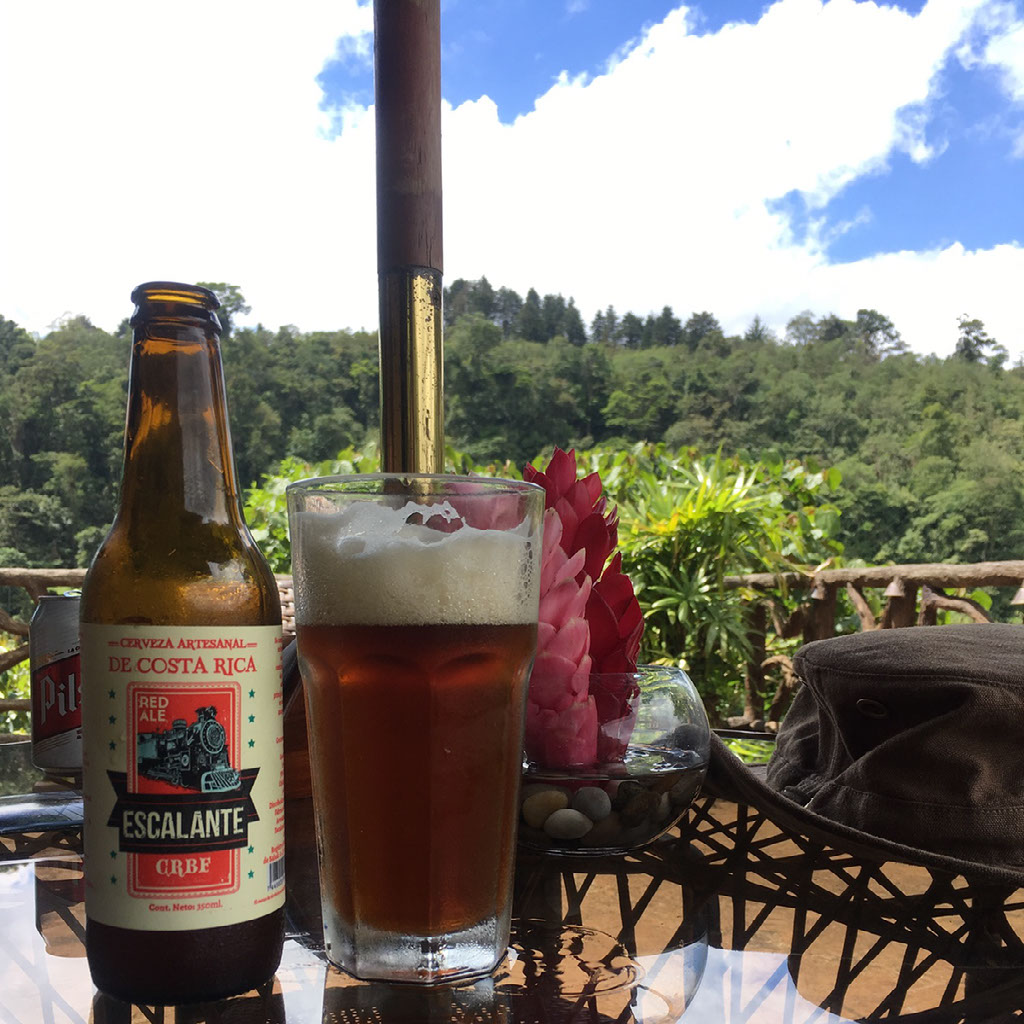 12 steps. Then 73 steps. Then 95 steps up to the gift shop. I am now a heaving sweaty mess with a big smile on my face, and there’s Helen and she’s saying “it’s a bar! Let’s get a beer!”. She’s right, it’s a bar and we get a beer. Takes me a couple of minutes to get my breath back, not only due to the ascent of stairs in hot sunny weather but also because I’m trying to talk a million miles a minute about having just seen a rainbow right in front of me. Shut up and sit down and have a beer, she says. Oh, they do Costa Rican craft beer here!