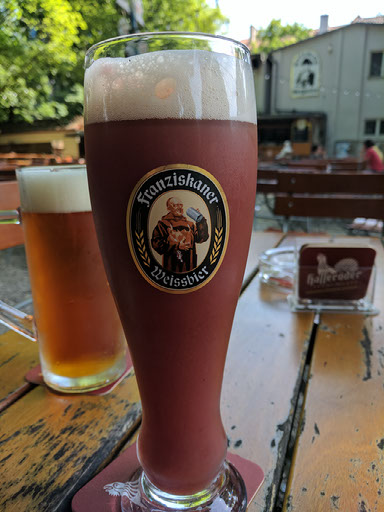 But first, breakfast. The Colosseum eiscafe outside the station seemed like a good place, serving as it does a variety of toased sandwiches and even more choice of ludicrous fruity ice cream knickerbocker glory style stuff. Helen’s “ice coffee” was actually a large coffee flavoured ice cream, and our sandwiches were exactly what was needed. Plus, since it was after midday, I figured I’d have a pint.