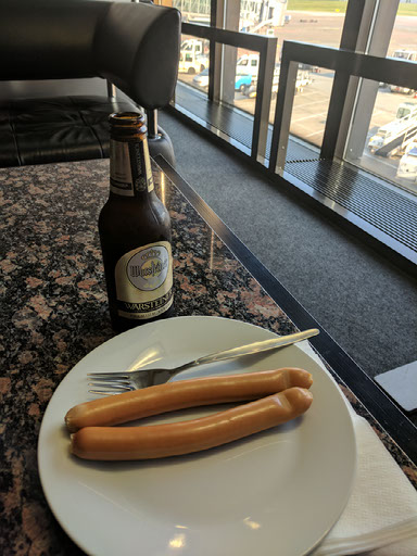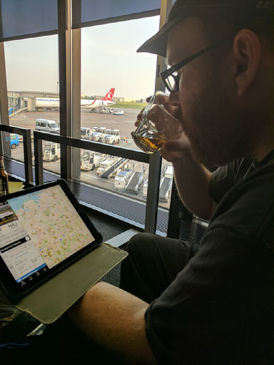 I spend most of the time here eating sausage, drinking an accidentally huge glass of Jim Beam, and tracking the inbound plane on Flightradar24 like the fucking nerd I am.