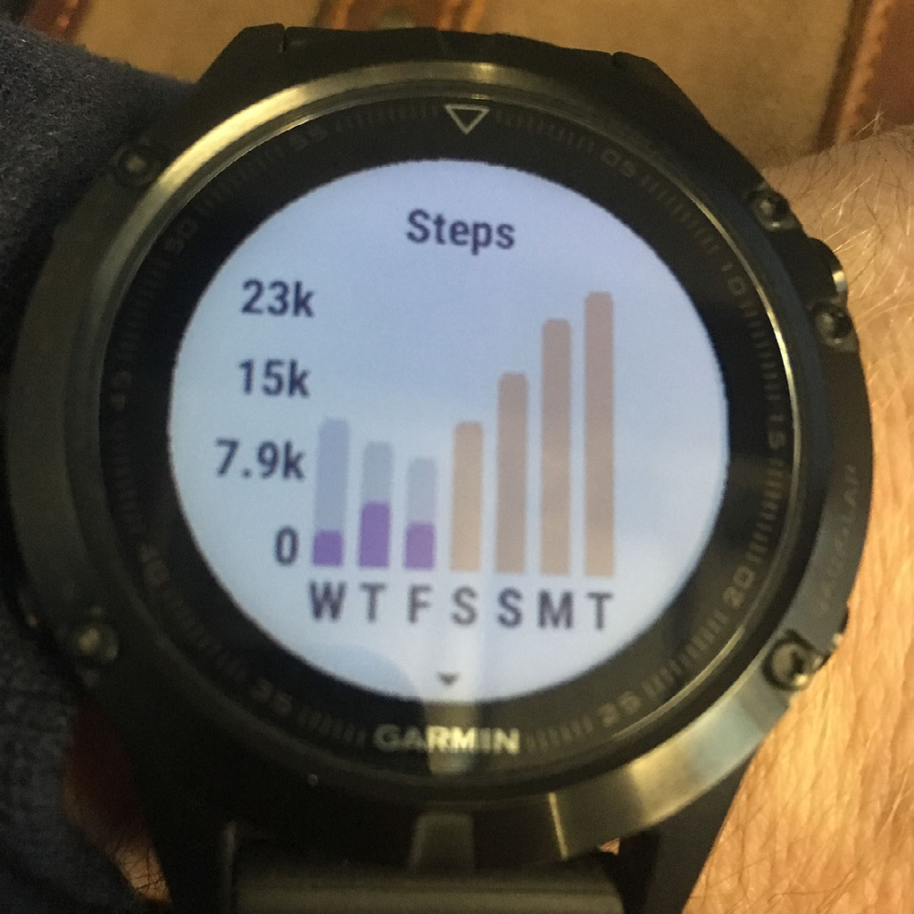 Soon, there’s a 144 and I’m on it, back through the hills I walked this morning. My watch is very impressed with my recent progess in terms of steps per day, since getting off those flights that now seem a hell of a long time ago. Perhaps this has not been the non-exhausting day I claimed to crave. Perhaps such a claim was bullshit?