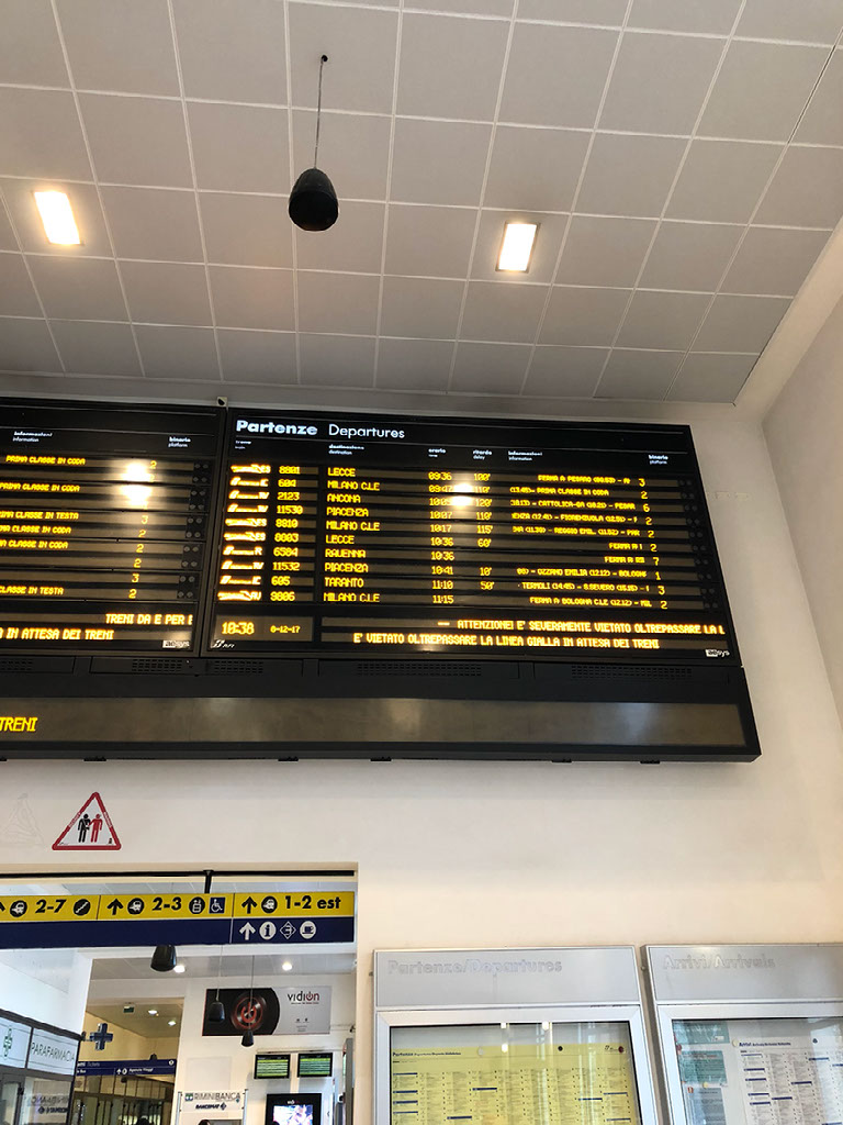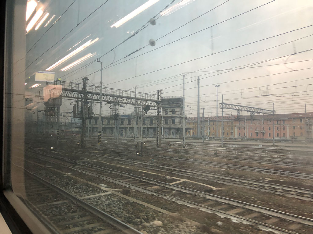 I’m now really starting to think I won’t make my flight home. Periodically there’s a flurry of running from some passengers, but I can’t work out why because still no trains are leaving. I research plan B. There’s a flight from Bologna at 6.40pm, and a bus direct to the airport, but not very frequently - the only one I can get is at 1.30pm in fact.