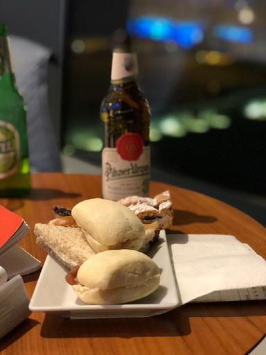 Airside, it’s a hell of a walk to passport control and the bit where the lounge is, punctuated by a stop in a shop to buy some bluetooth headphones because I can’t stand listening to the world at large any more. I’m waved through passports and welcomed into Sala Montale.