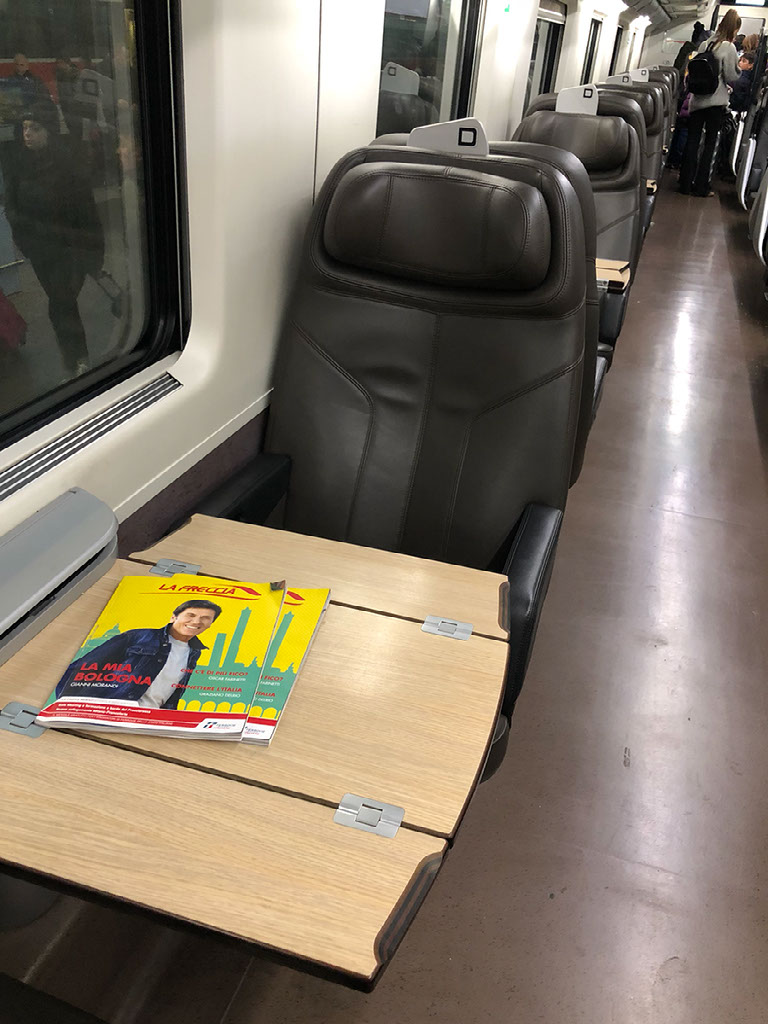 Along comes the Frecciarossa. Hurrah! And whew. My 3+hrs of boring fail and peril at Rimini station is at an end, and here comes 2hrs of luxury comfort and peace speeding through the Italian countryside towards Milano. Plus, I can have my beer that I was convinced for quite a while I’d have to jettison - I didn’t know the rules about drinking in public and assumed it wasn’t allowed, and certainly wouldn’t have been allowed it on the bus. But on a train I certainly can.
