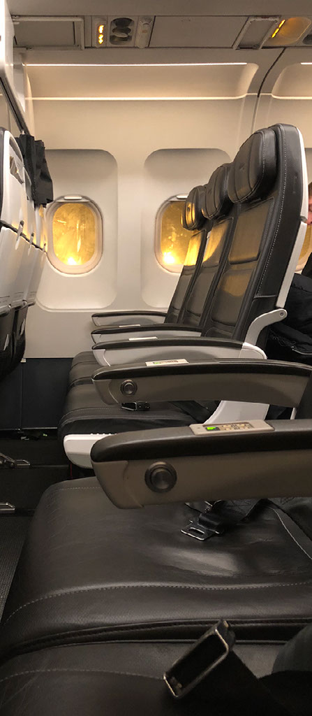Onboard, I am further hindered by a man having trouble figuring out where row 2 is. Eventually grab my seat window seat 6A and wonder if anyone is going to sit next to me.