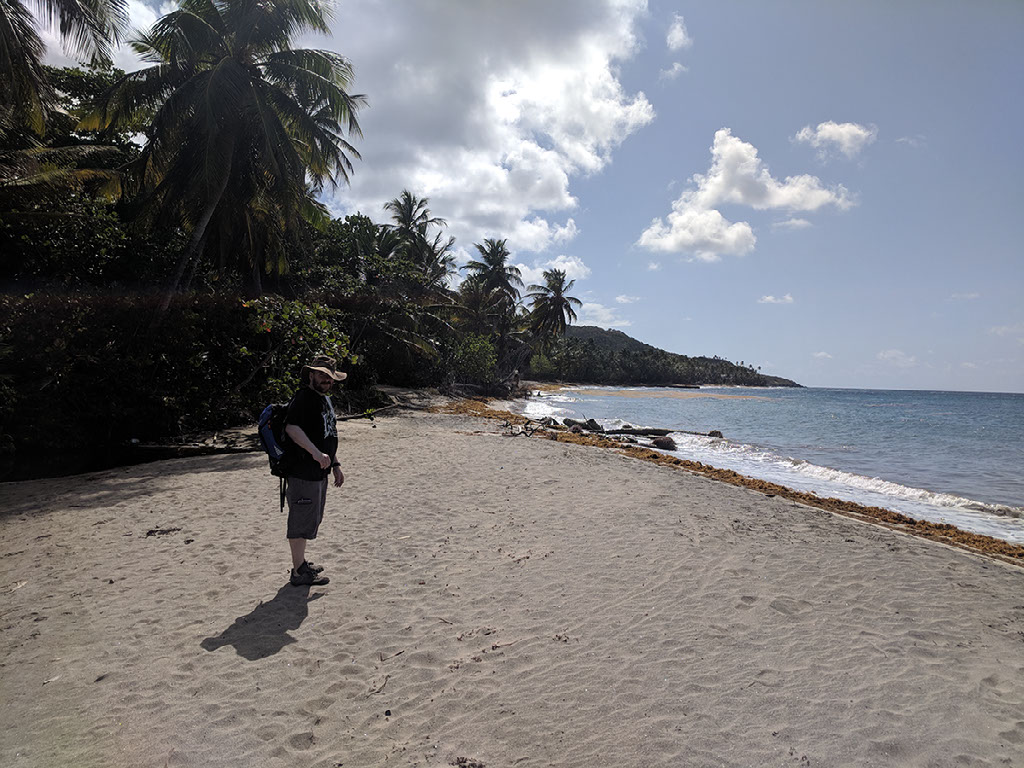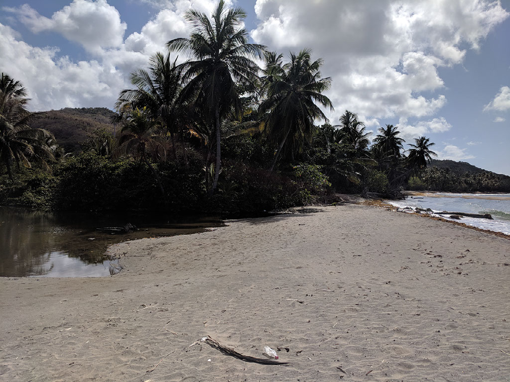 Ahead of us is Sugar Loaf Island, which is privately owned and available on Airbnb I shit you not. We can see Levera beach, one of the several around here where leatherback turtles come at this time of year to lay their eggs. At the other end of this beach is Bathways Beach, a more popular haunt and where we will find several bars and kiosks and stuff. It’s been a long and arduous walk so far and the end is in sight.