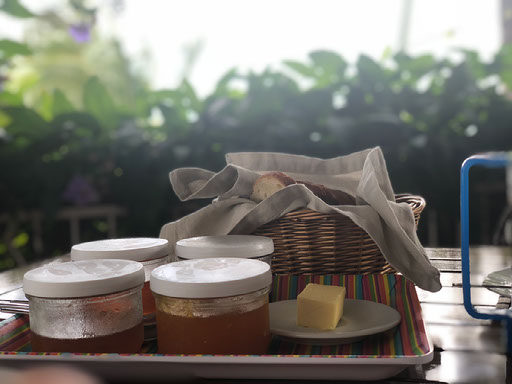 Breakfast at 9am was, as always, great though. Having been so effusive with our praise for the eggs on previous mornings, Helen got invited into the kitchen to learn the recipe and secret. Mostly it’s the use of coconut oil, apparently. It helps if you have your own coconut trees in your garden.
