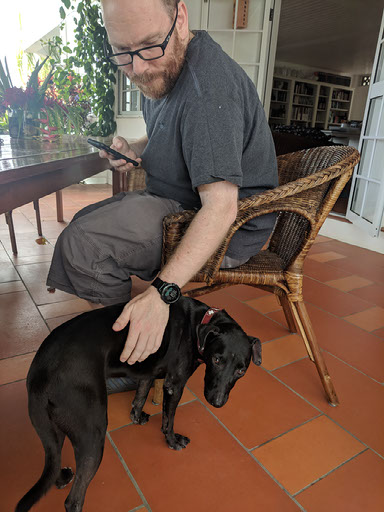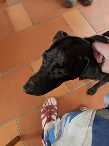 We asked for our bill and went upstairs to pack, turning one suitcase into “the filth sack” where all our grotty nasty sweaty clothes from the last few days are banished. Our next accomodation has laundry, thank fuck. While writing up our day on the buses we heard a horn and wondered if our transport had arrived early, so packed up to go wait downstairs. It hadn’t, but it was only another 10 minutes – plenty of time to play with the friendly dogs and get yet more recommendations for places to visit.