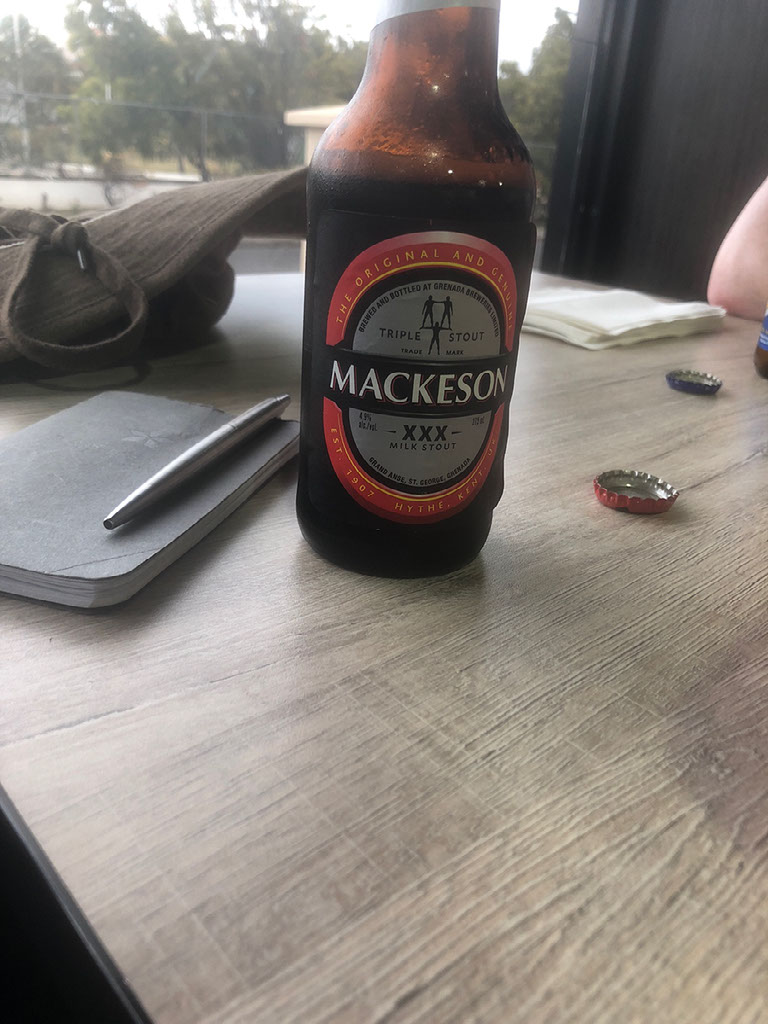 We wanted transport though, but first, y’know what? Let’s go to Pizza Hut. Seriously, next to the big KFC there’s a Pizza Hut and we’re hot and hungry and it’ll be nice to eat some junk inside an airconditioned building for a bit. So that’s what we do: two medium pizzas, a Carib lager and a Mackesons stout please.