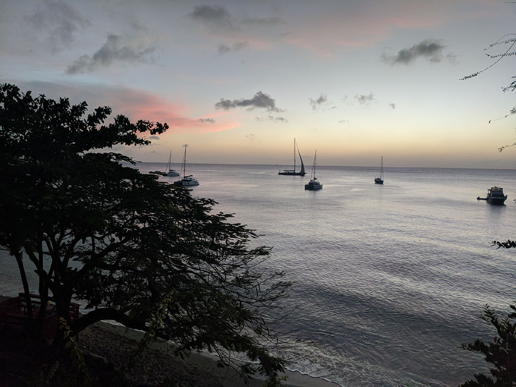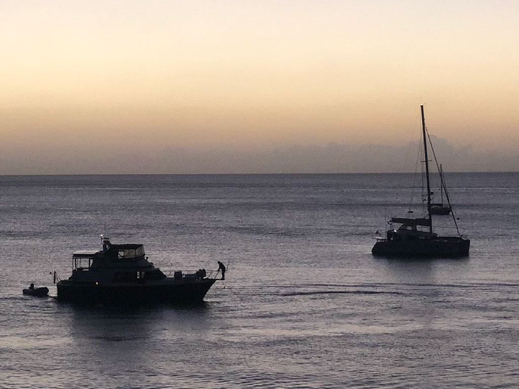 Mostly the boats don’t move. A few go past, not many, some close and some far; only one is a big noisy boat called Rhum Runner II, full of people and pumping out very loud music - but no noise from the folk, who don’t seem to be dancing or carousing in any extravagant way.