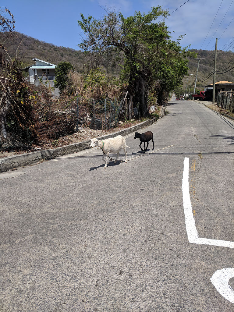 Constantly they bleat as a pair, the larger one first and the other one like an echo. It’s very loud. Briefly, they change from walking into a bit of a jog, almost chasing us, but ducking into an alleyway rather than catch us up.