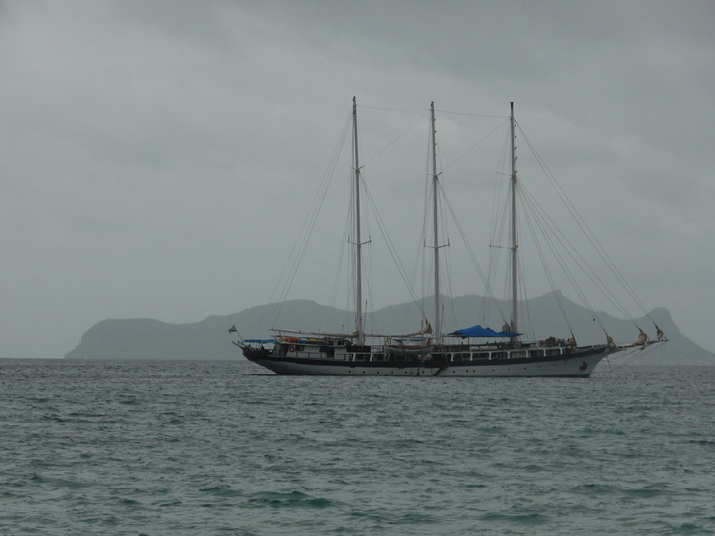 We’re sat there for 20 minutes or so while the kids lark about, a couple of them making themselves useful as they ferry goods from the smaller boat onto ours: we’re couriers as well, as usual. Eventually we’re about as full as we were in the morning, of passengers if not cargo, and heading away from Carriacou. The weather has brightened up since the rain, maybe this crossing won’t be so bad?