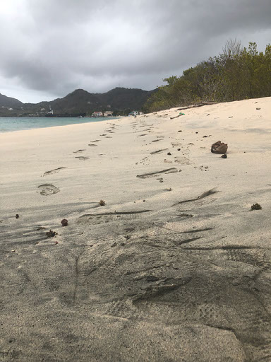 Still part of the nation of Grenada, this is the largest Grenadine, the chain of islands that spreads north from here up to St Vincent. We had thought about getting a driver to take us on a tour, but after the long and bumpy ride we neither of us particularly fancy 2.5hrs in a car/van. So, we politely decline all the offers from the waiting cab drivers; they’re fine with this, but would like us to take their business cards and call them anyway.