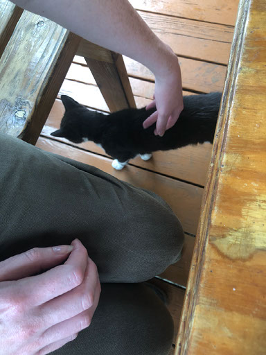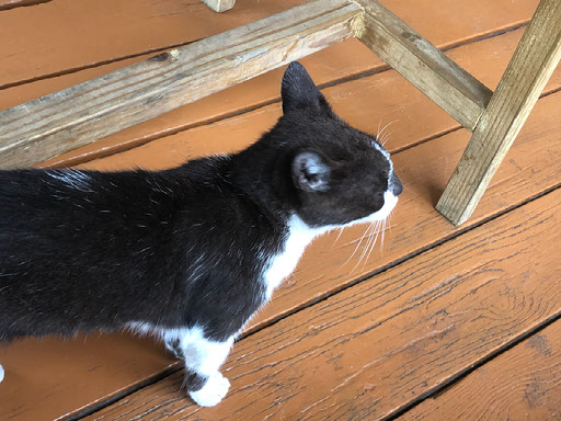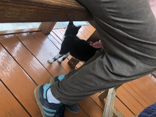 There’s no sign of our Osprey boat, which we’d expected to be there like 45 or so minutes before the 3.30pm scheduled departure. Always on time, right? But there’s a cat to keep us company for a bit.