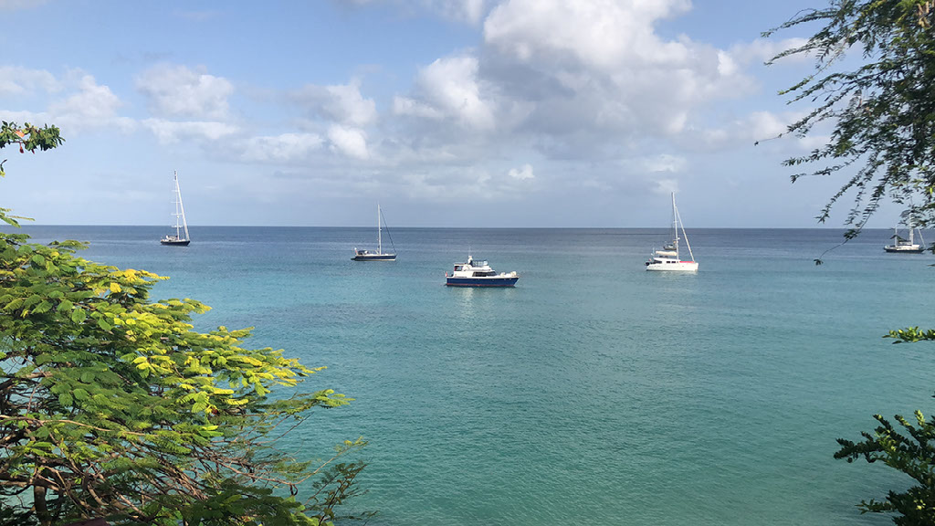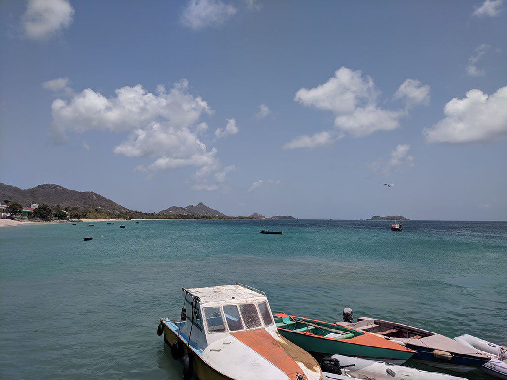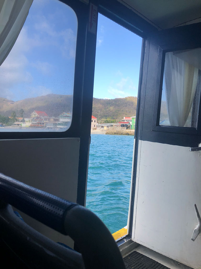 Two hours awake, another three asleep, and we’re up and about: today, we make another fist of getting the boat to Carriacou. Some folk back home on a WhatsApp group are bemoaning their own holidays coming to an end, so like a bragging twat I let them know what I’ve just woken up to.