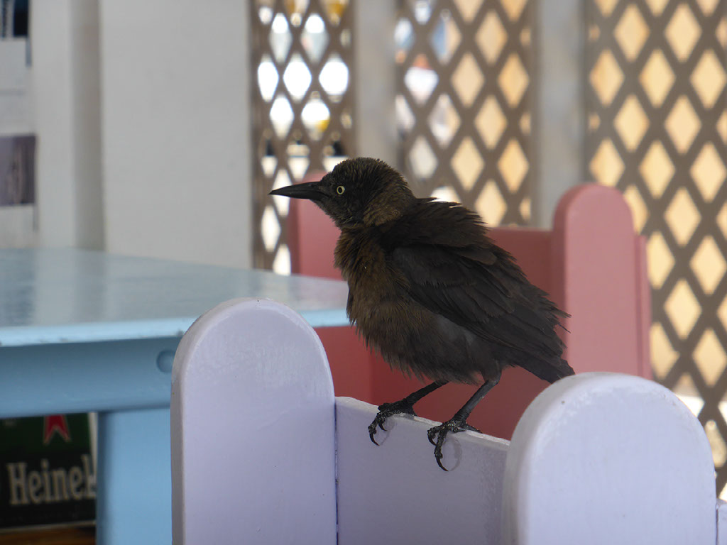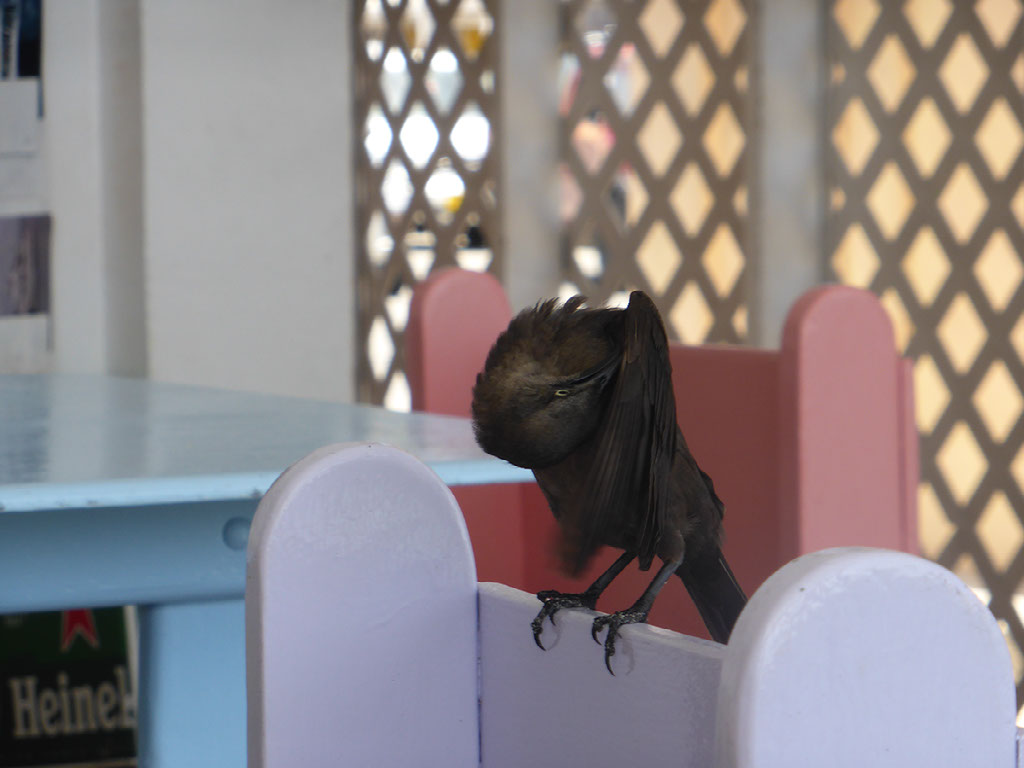 The fish is MAGNIFICENT. Nom nom nom. We’re joined by a bird who had been flying around inside the kitchen trying for scraps, and now is eyeing our plates up constantly.