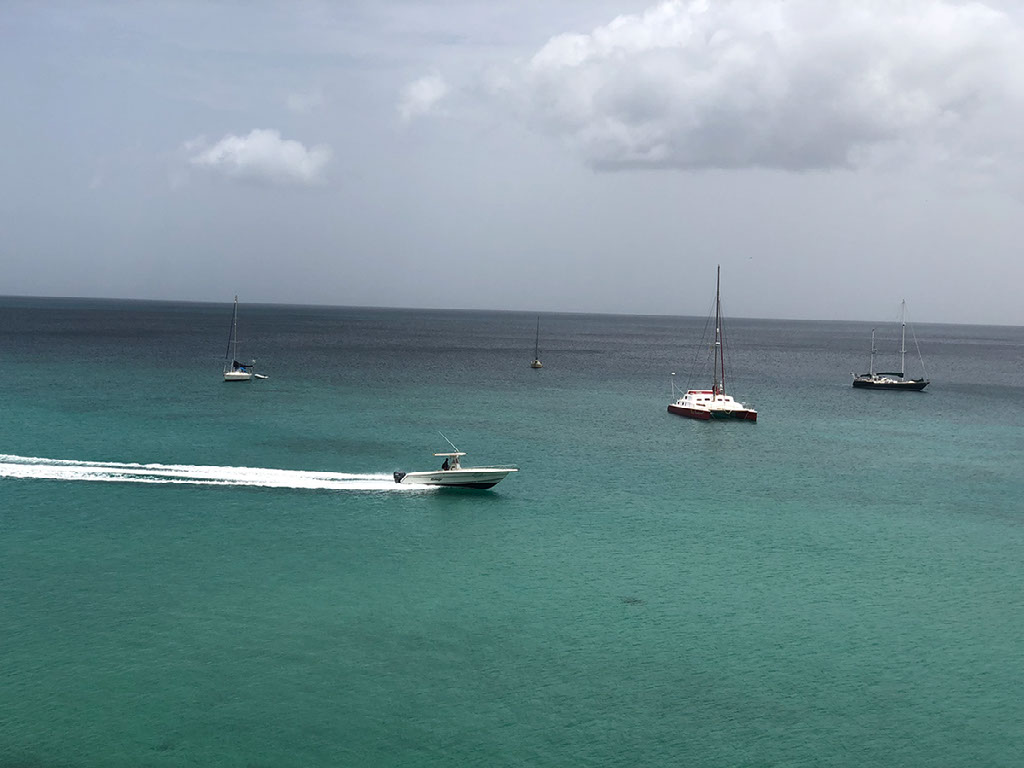 At “Wine & Something”, the bar at the Regis Palms, a lady standing next to a table covered in phones and paperwork, though attending to neither as she was eating some messy fruit, asked us what we wanted. As if it wasn’t obvious, we’d like to sit and eat please. That’s when we realised it was still only 1130 and obviously way too early for lunch to be ready. But she was happy to get us a water and a beer while we sat looking out over the sea, watching the flying fish put on a show beneath us while trying to avoid being caught by the various diving and skimming birds around.